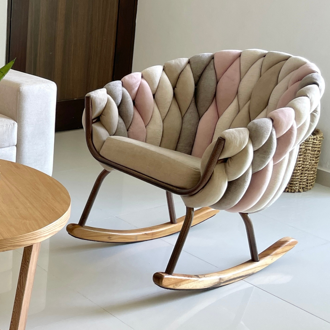 La mecedora Salamanca es una verdadera obra de arte en forma de mobiliario. Su singularidad radica en el intrincado trenzado que adorna su respaldo, otorgándole una elegancia inigualable.